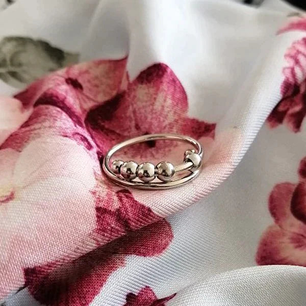 Ideal para dedos inquietos o energía reprimida, las perlas metálicas giratorias ayudan a evitar morderse las uñas y hurgarse la piel.