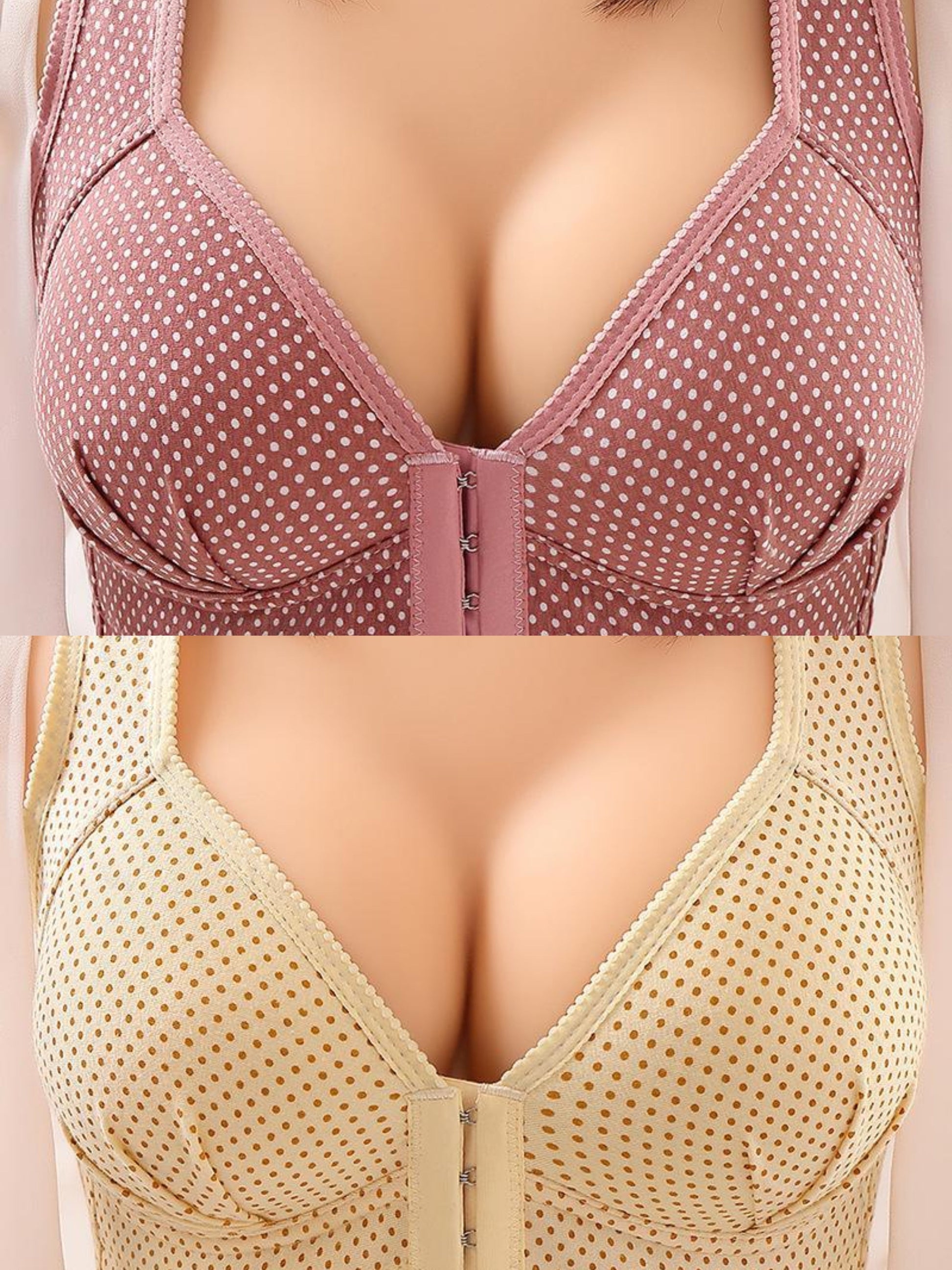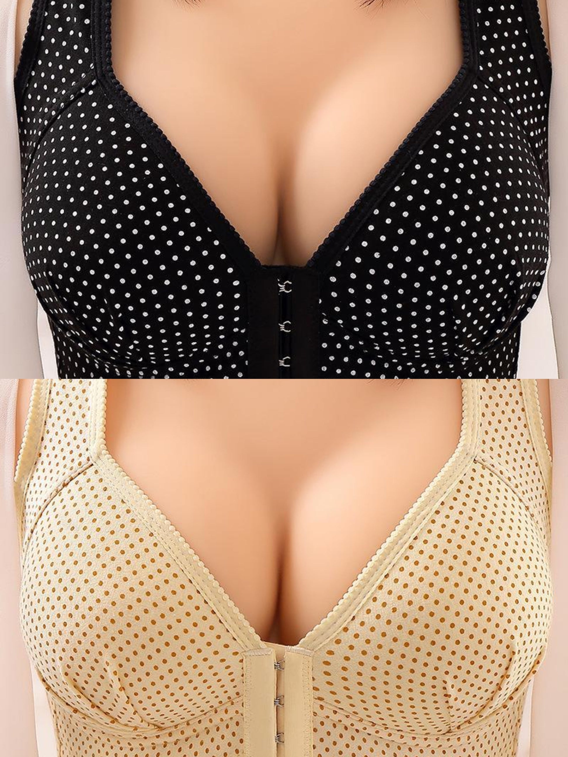 The front hook-and-eye buckle design of the full-face bra makes it easy to put on and take off and avoid trouble.
