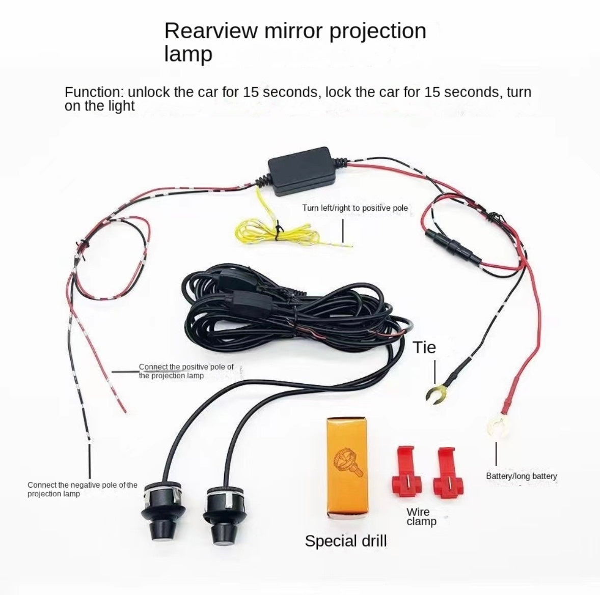 Questa è una luce di benvenuto per tappetino dello specchietto posteriore dell'auto. Sbloccandola si accenderà per 40 secondi, bloccandola si accenderà per 40 secondi, il segnale di direzione si accenderà. Quando lo specchietto posteriore viene aperto, apparirà un paio d'ali che si diffondono lentamente sul pavimento, dando alla gente una sensazione di pieno slancio e dominio.