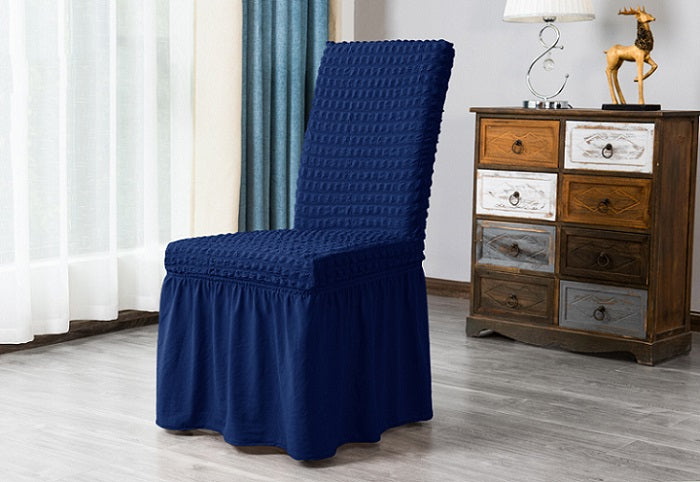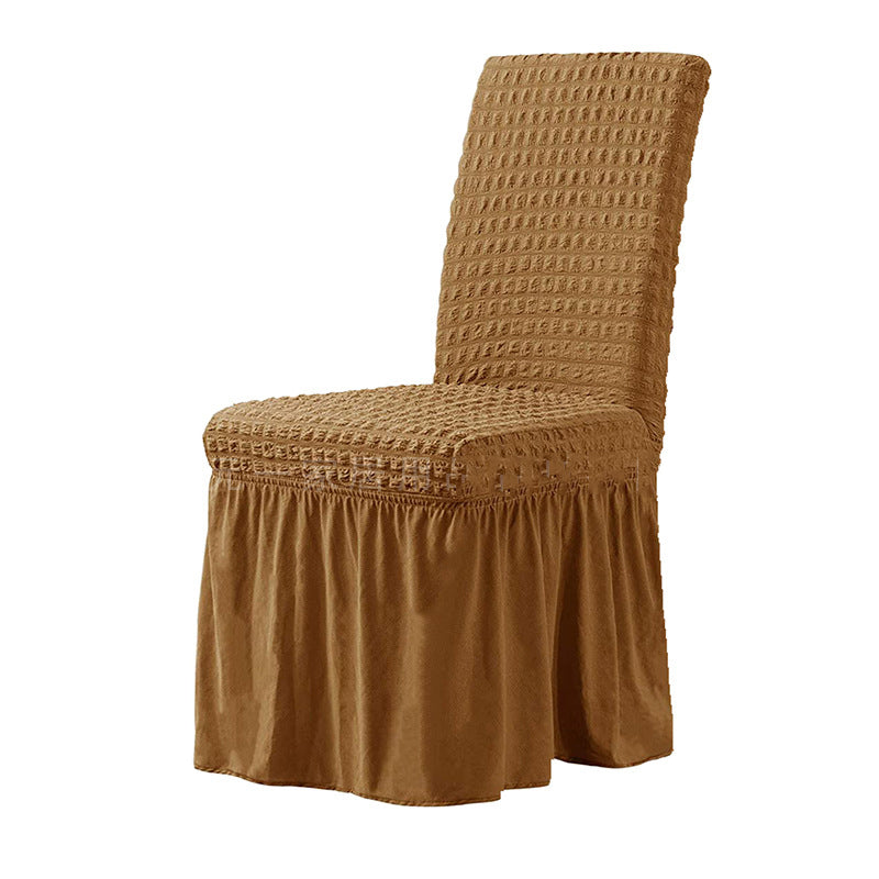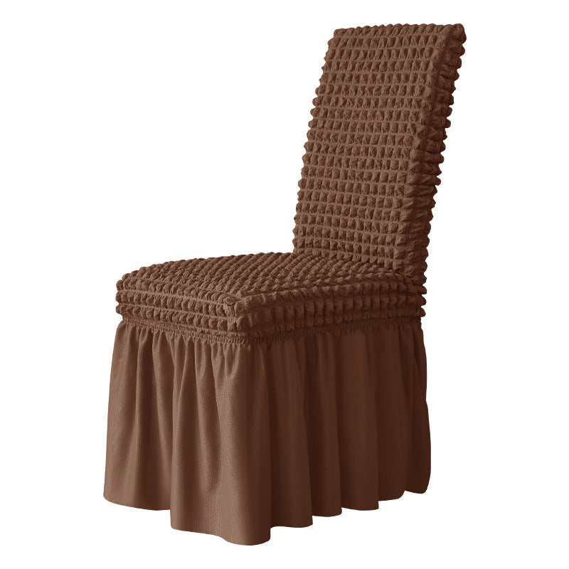 This chair cover with long skirt fits most conventional chairs, except armchairs.