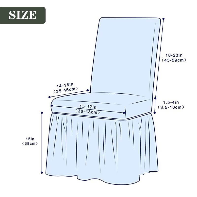 - Perfect Fit: With stretchy material, our dining chair covers can perfectly fit chair size as follows: the back of the chair is 18-23 inches high and 15-17 inches wide; the seat is 14-18 inches long, 14-18 inches wide and 1.5-4 inches high. Please measure your chair in advance and compare to our size chart.