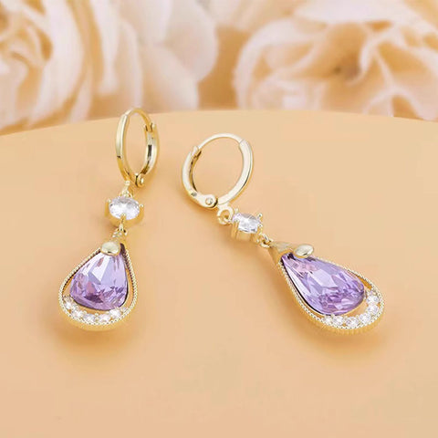 Fashion Womens Teardrop Austrian Zircon Crystal Leverback Drop Earrings 14K Gold Plated Hypoallergenic Jewelry.