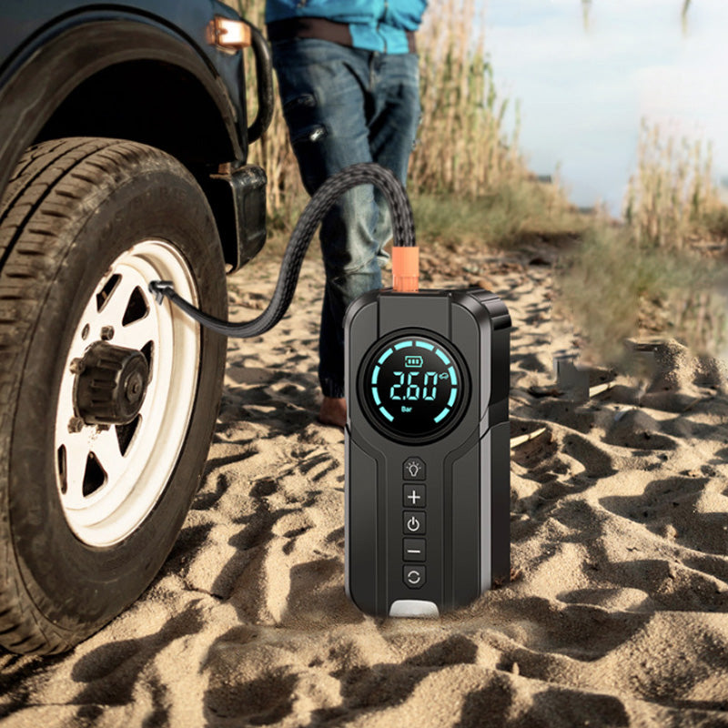 Intelligenter 7-in-1-Starthilfe-Kompressor für unterwegs