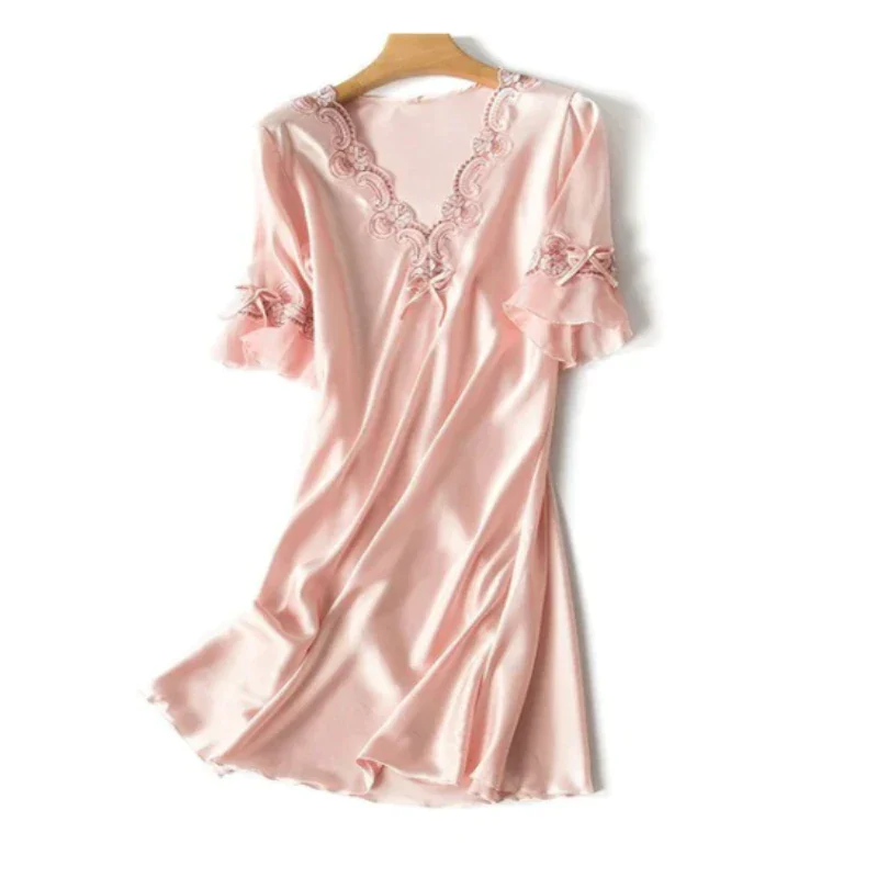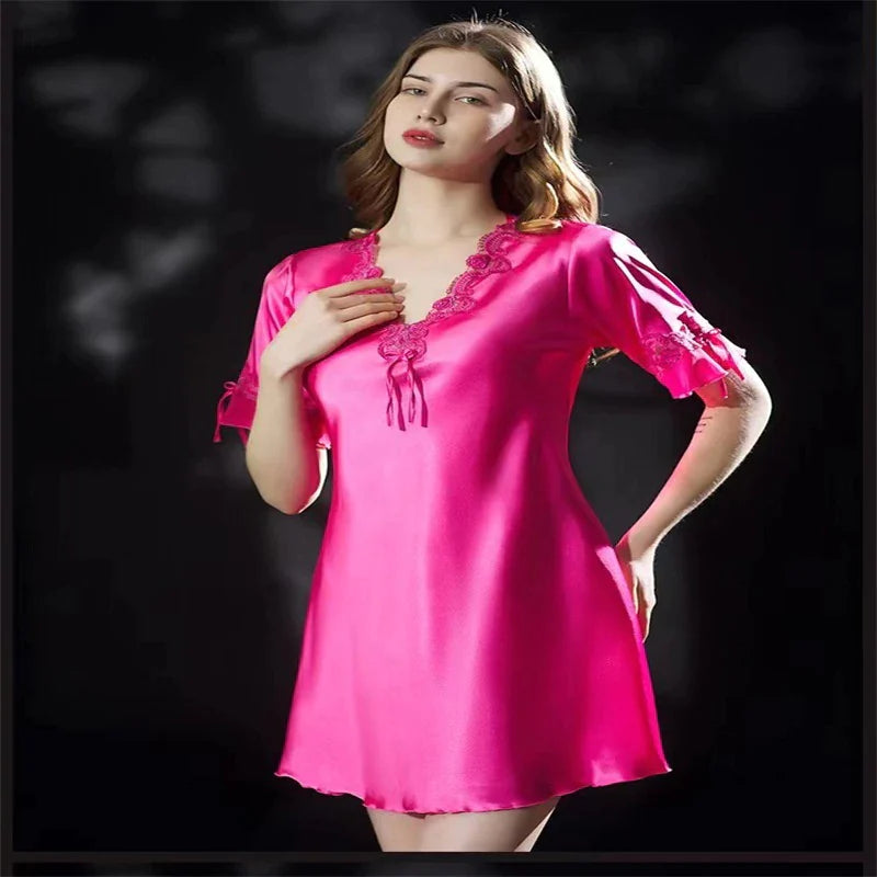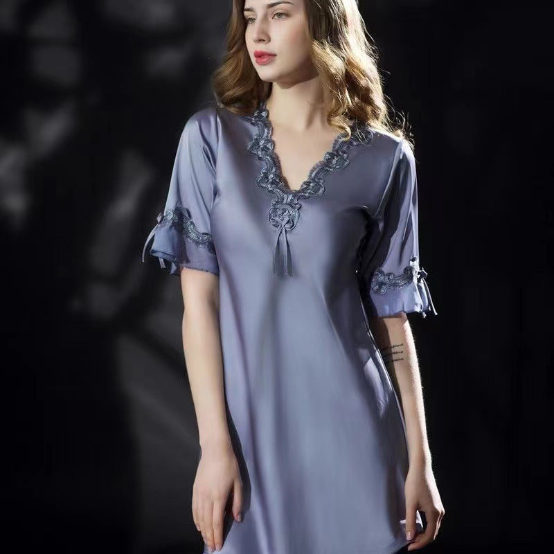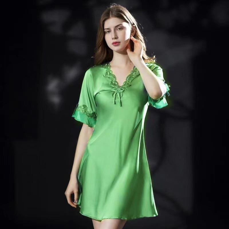 Lace Nightclothes Ice Silk Short Sleeve