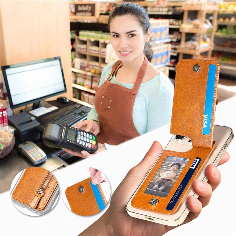 Two- layers design: The zipper of the upper layer can make your cash and cards safer. The inner layer offers a large space that can keep 4 cards.
