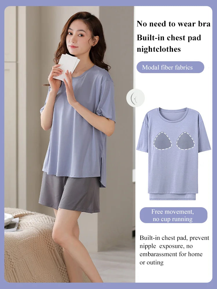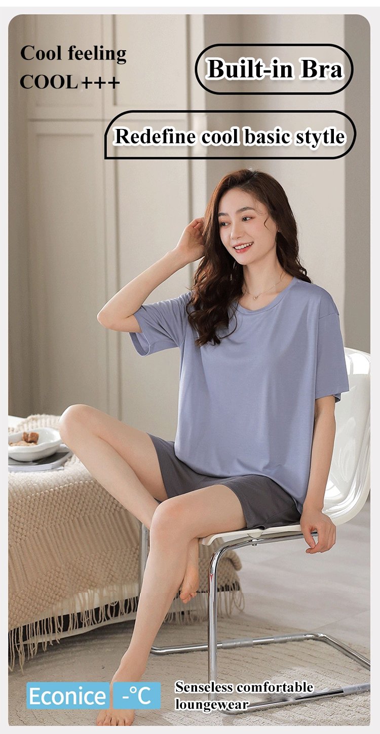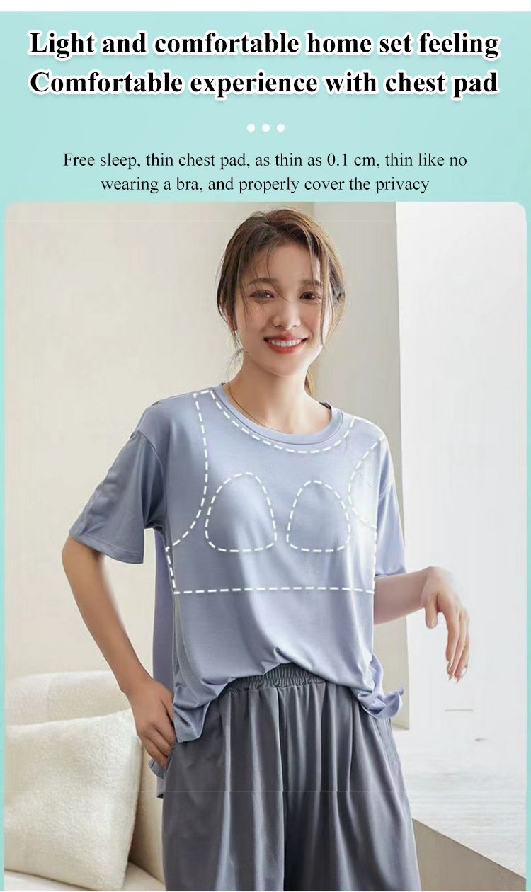 [With Chest Pad] New Ice Silk Cool Pajama Set