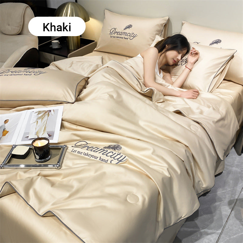 Set da letto estivo in seta ghiacciata, quattro pezzi🛏️