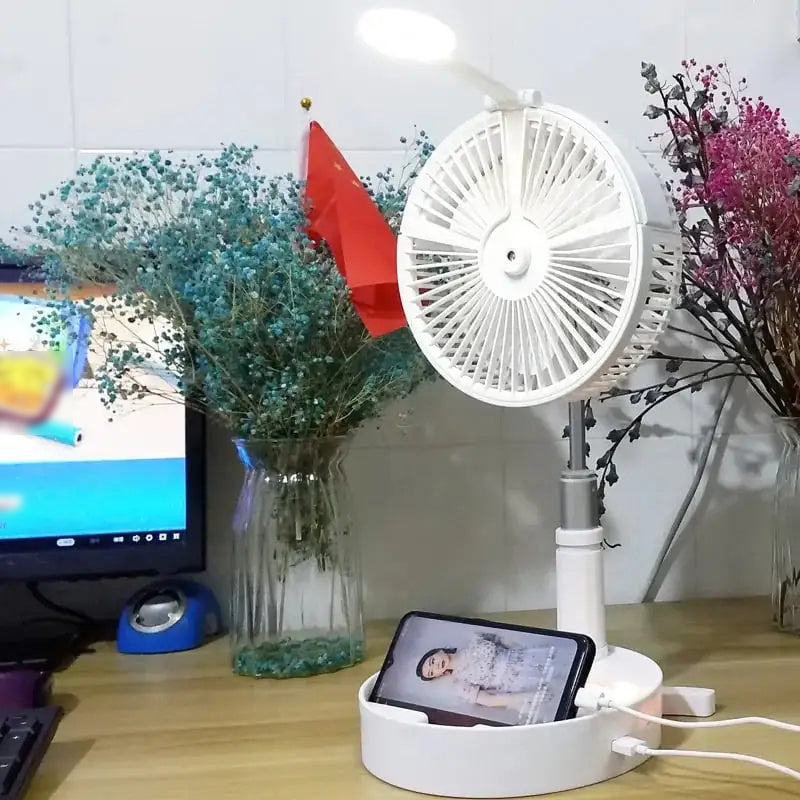 This cooling office fan features with LED light, night lights and humidification function, can be used as a fan, desk light, night light, mini humidifier or even phone holder, a must-have good for air circulation in this hot summer