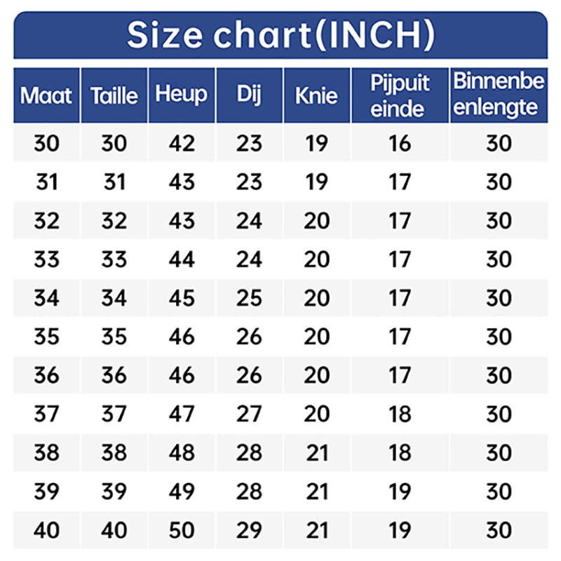 Maat: W30, W31, W32, W33, W34, W35, W36, W37, W38, W39, W40
