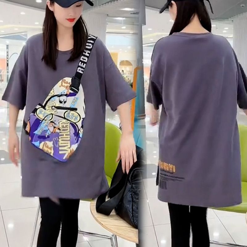 Women’s Unique Crossbody Bag Short Sleeve T-shirt with Zipper Pocket