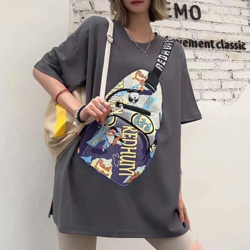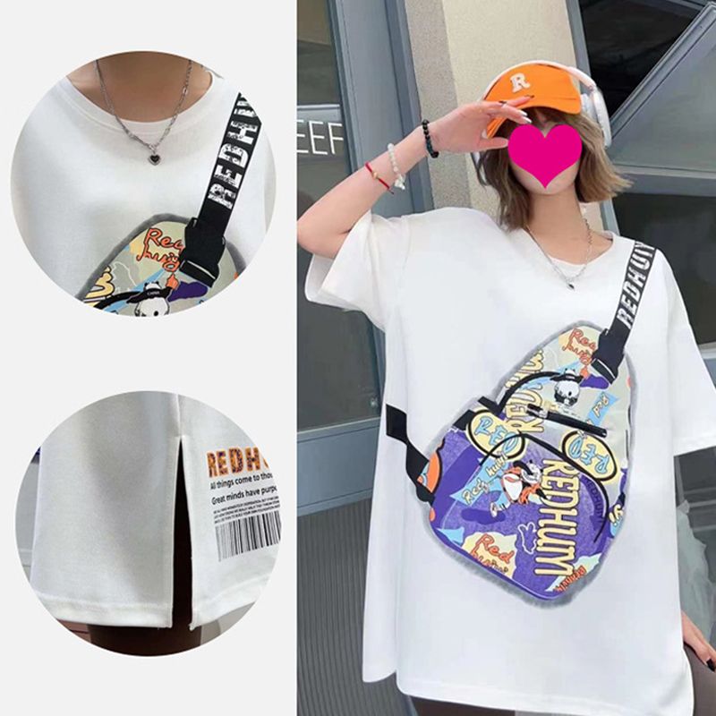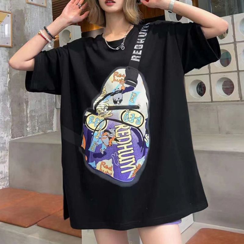 This loose-fit short sleeve T-shirt is designed with the unique pattern of a crossbody bag, there is a zip pocket in the front as if it were a real crossbody bag! It is unique, fashionable, comfortable, and functional!!